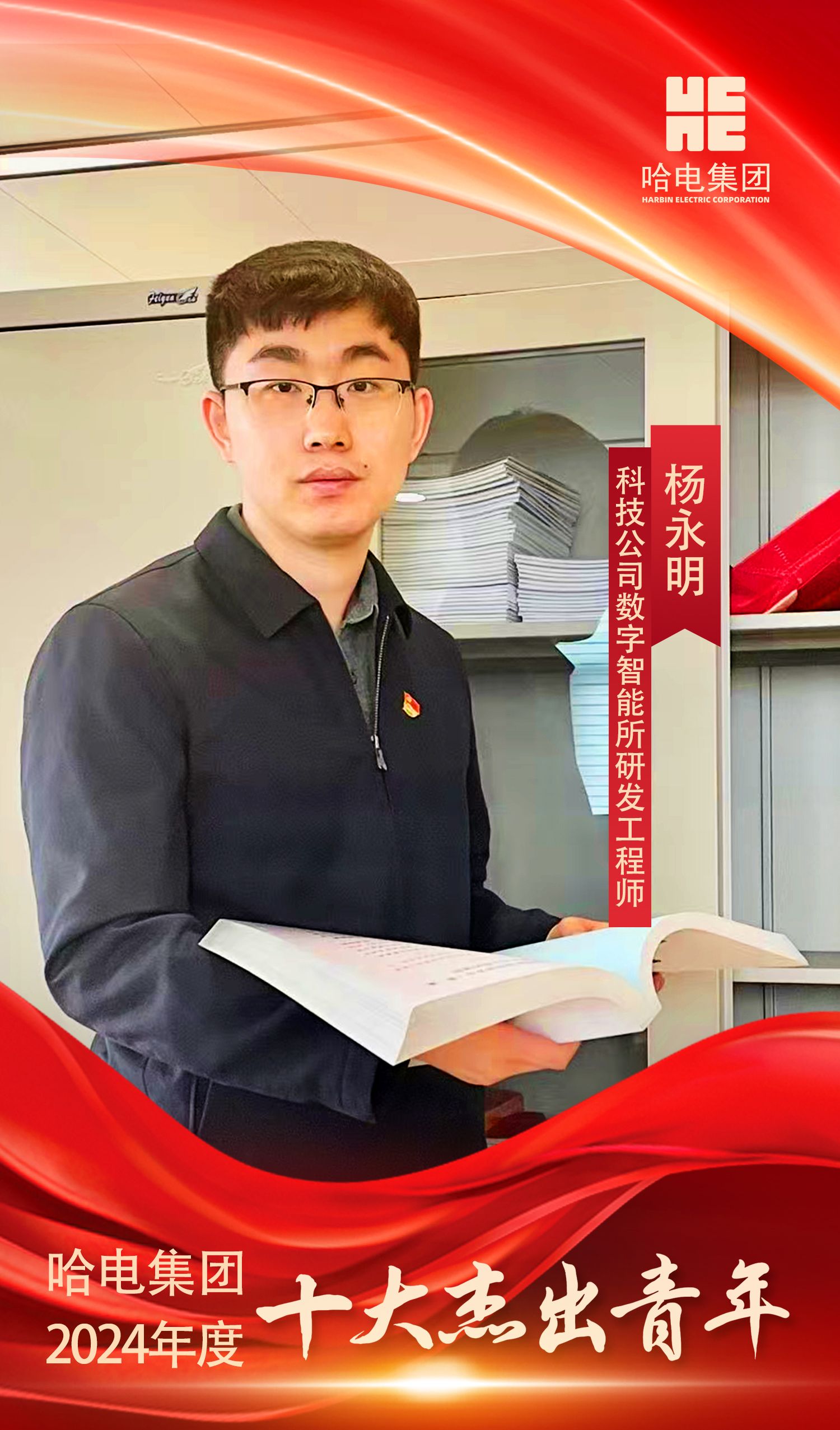 作为新时代青年科技工作者,他参与2项省部级、2项集团级重大研发任务,以第一发明人身份获得5项发明专利授权。历时四年,成功研发哈电火电数字孪生装备一体化智能计算引擎。作为集团动力岛“揭榜挂帅”项目技术负责人和集团第四批头雁创新团队“青年后备头雁”,他带领团队攻克工业大数据平台和一体化运维系统关键技术,为大型发电装备装上“智慧大脑”,有效推动多项成果落地转化。杨永明以扎实的专业功底和开拓创新精神,书写了青年工作者技术报国的使命篇章。